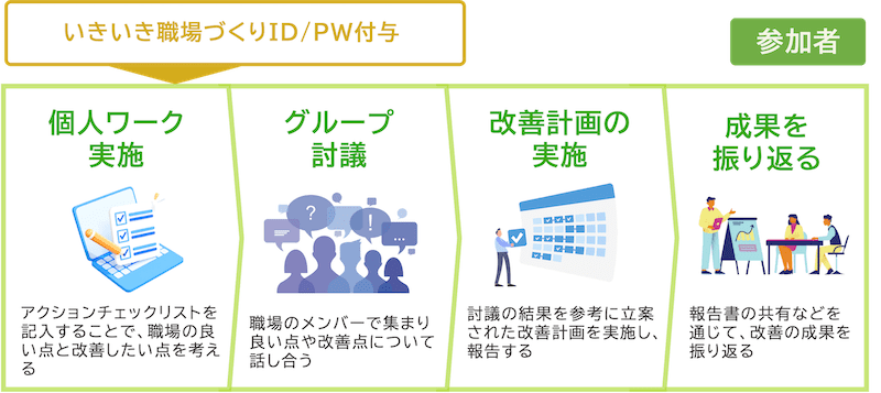 詳細は「 【参加者用】いきいき職場づくり(Web版)マニュアル 」 をご確認ください。